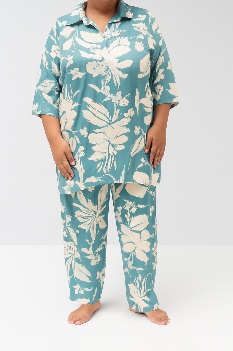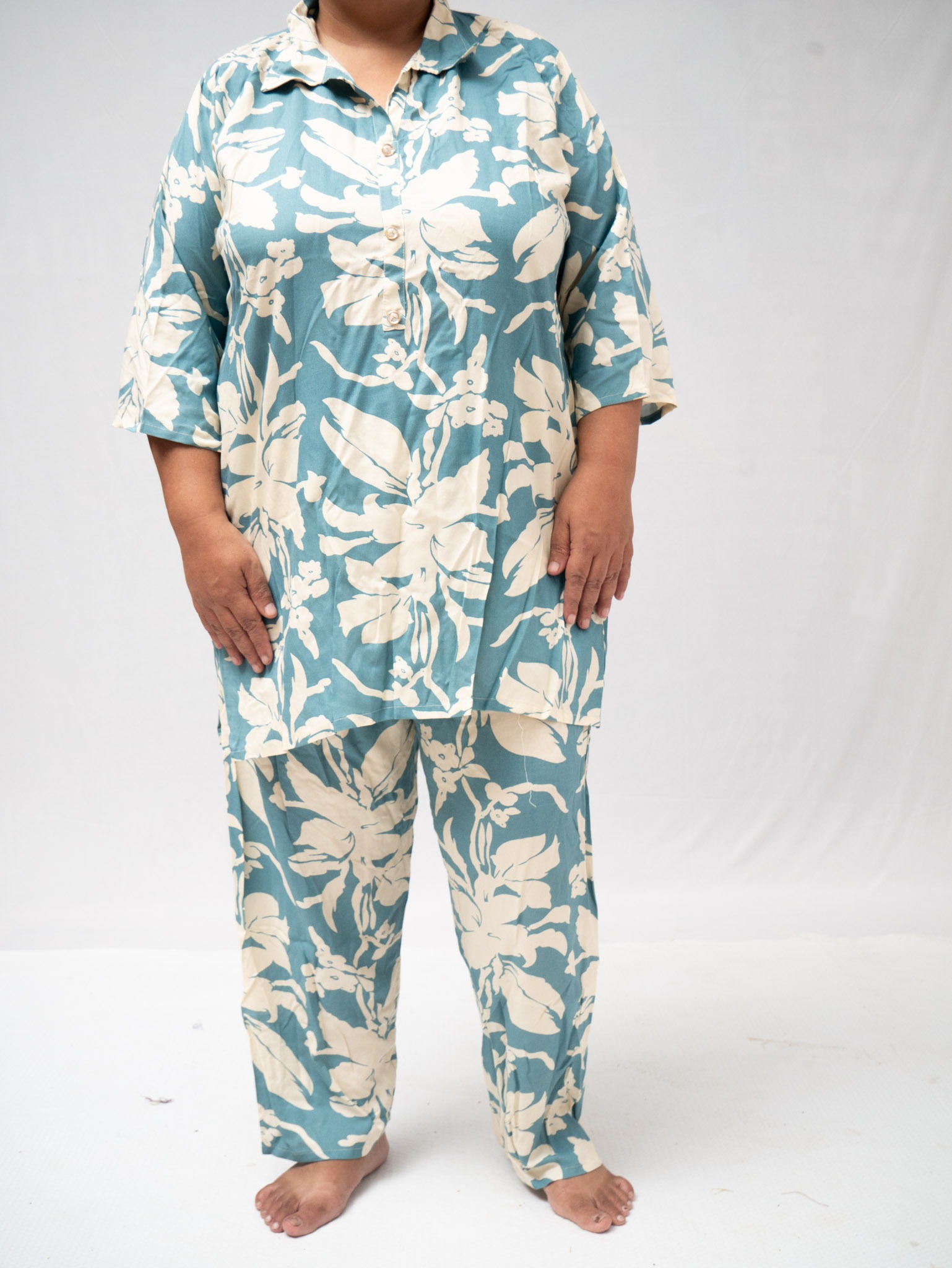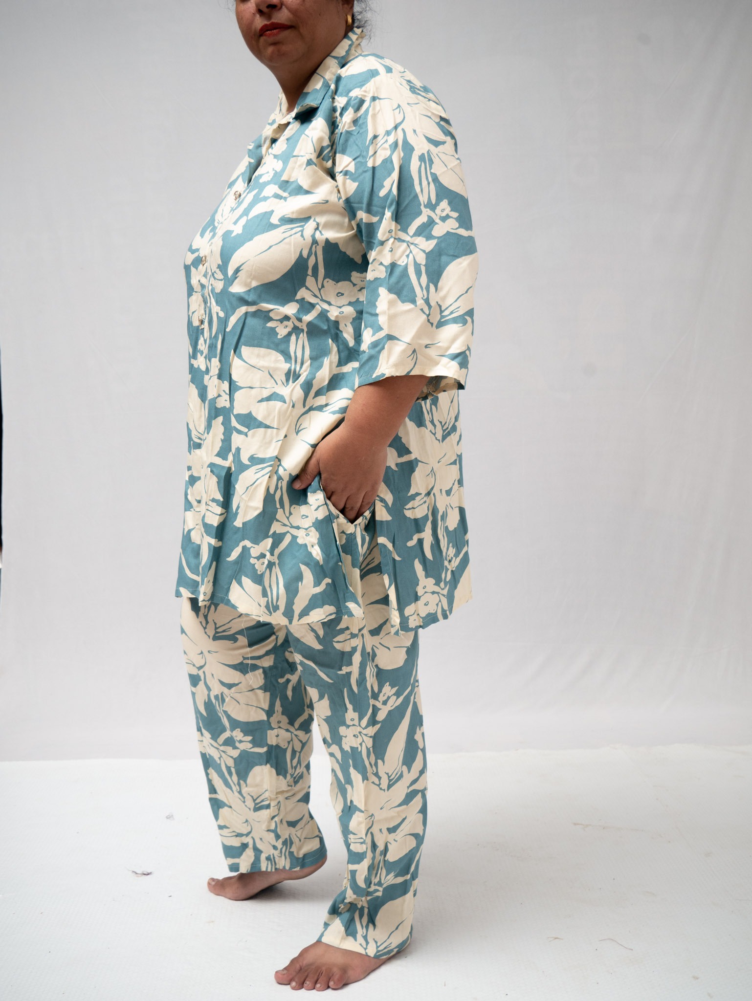 This printed co-ord set brings together comfort and statement style in one seamless look. The button-up shirt features full sleeves and a relaxed silhouette, making it ideal for all-day wear. Its matching wide-leg pants offer ease of movement and a coordinated finish, while the all-over leaf-inspired print adds a touch of nature-inspired charm.